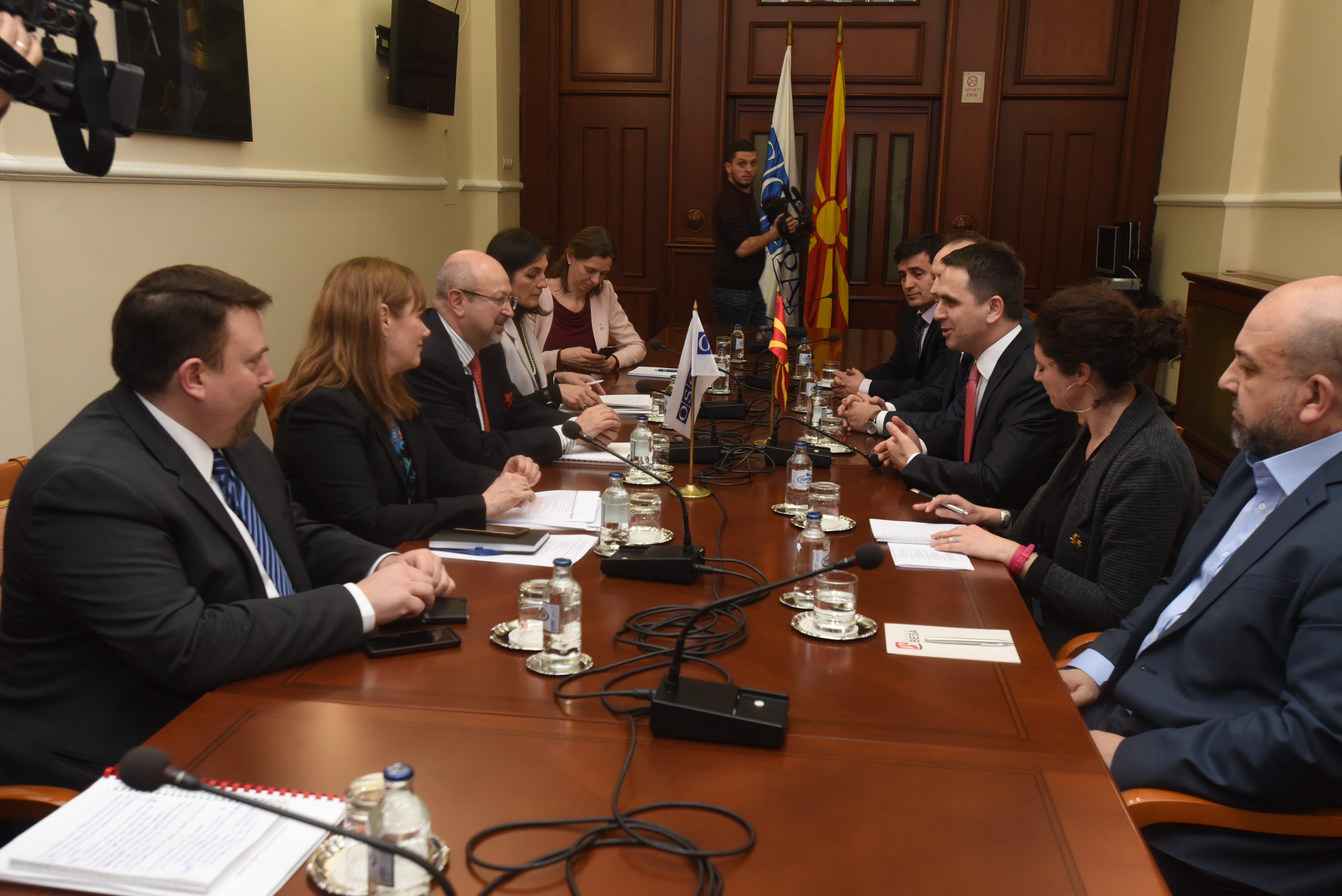 OSCE Secretary General Lamberto Zannier (l) meets with BESA president Bilal Kasami and party representatives (r) during his visit to Skopje, 9 March 2017.