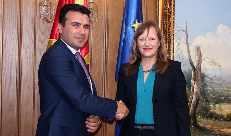 Head of OSCE Mission to Skopje Nina Suomalainen (r) meets newly elected Prime Minister Zoran Zaev (l). Skopje, 9 June 2017.