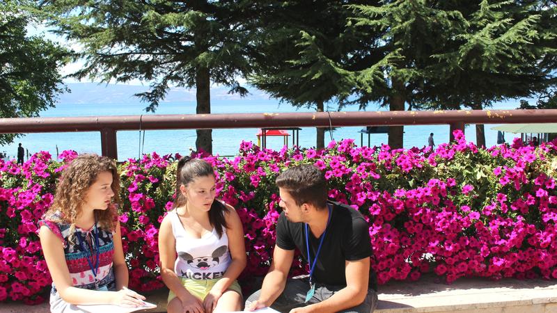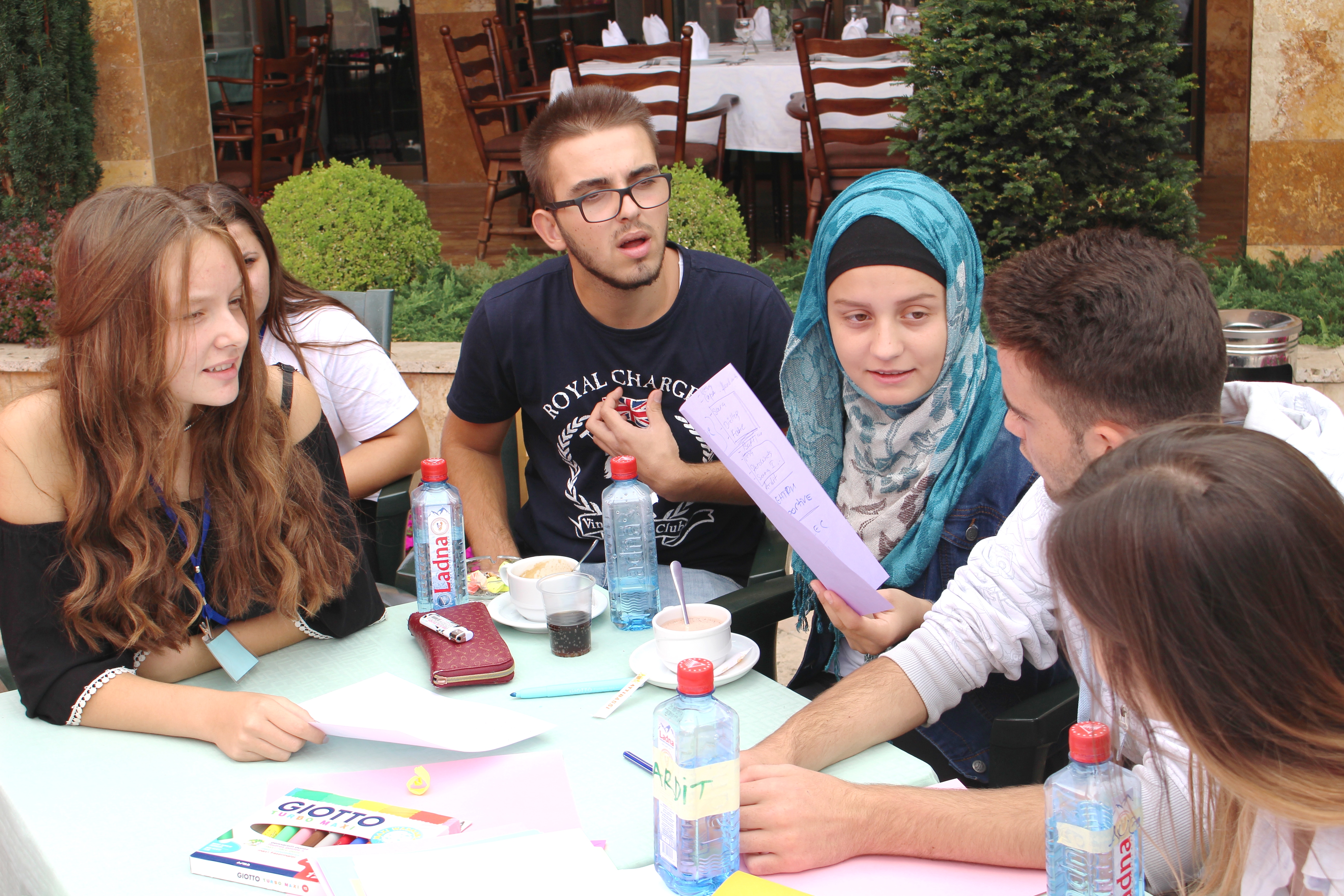 Participants discussing promotion of the activities during the Confidence Building Youth Workshop in Ohrid, 2-5 September 2017.