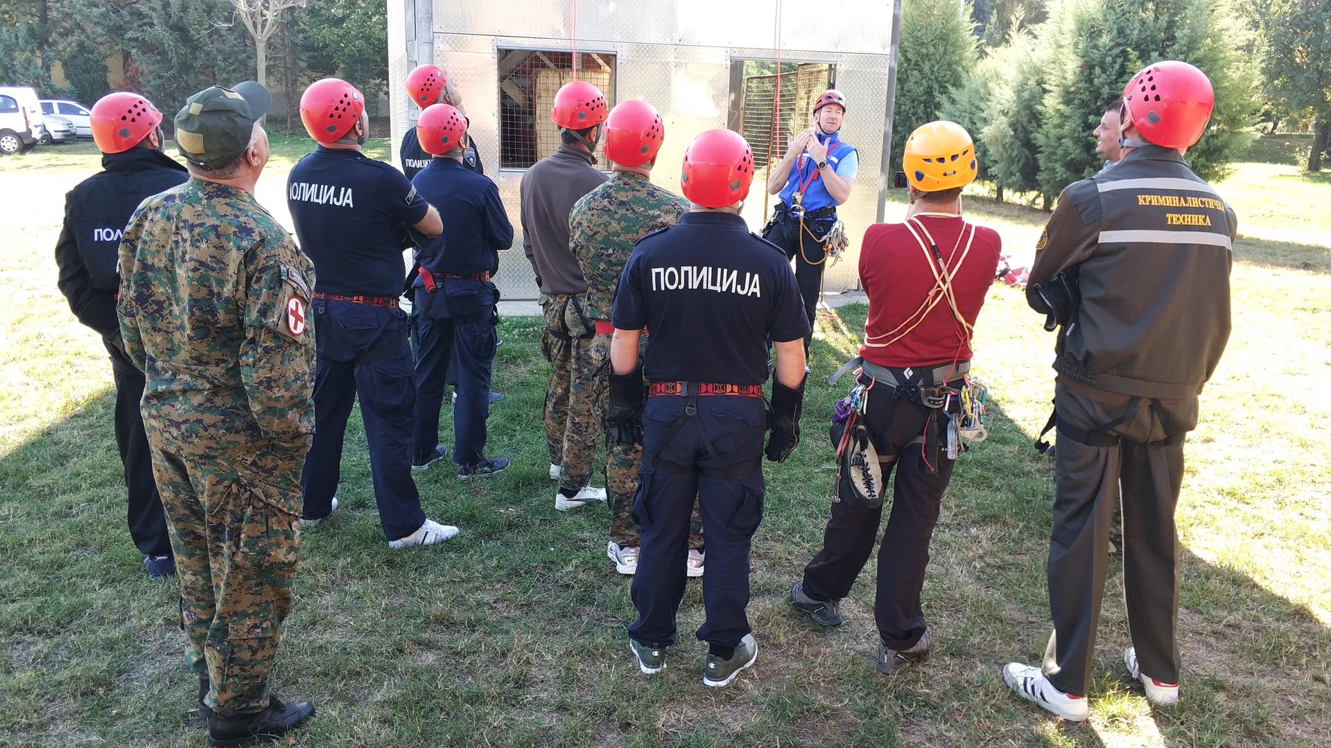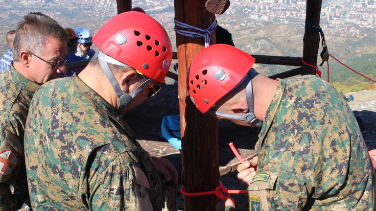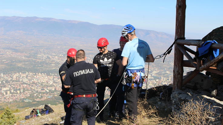 The OSCE Mission to Skopje in co-operation with the French Embassy organized a practical training course on green border observation in mountainous area for border police officers, special police and forensic investigators from 9 October to 19 October 2017. The training course, which was delivered by experts from the Chamonix-Mountainous Rescue Team (C.R.S.) within the French Police, covered various topics, including orientation, rescue and climbing techniques, as well as communication skills in mountainous areas.