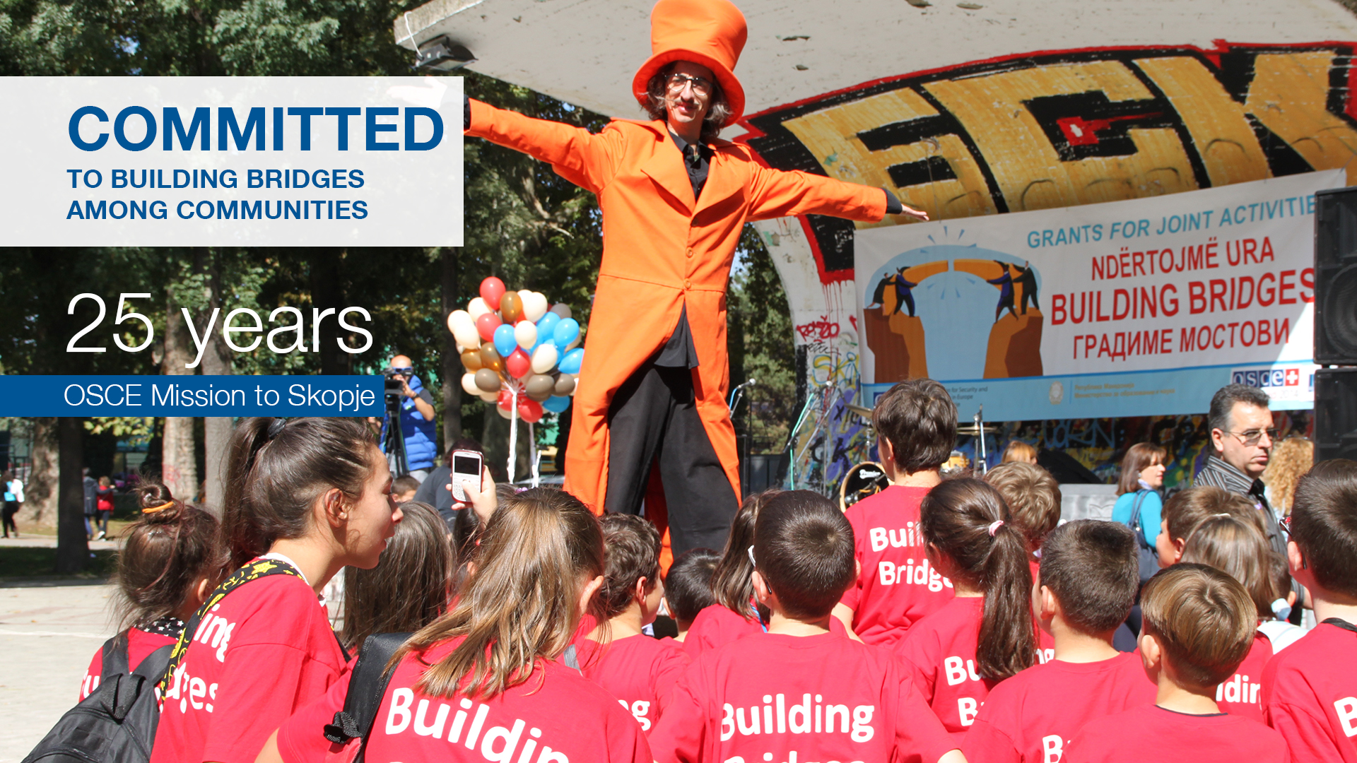 Students watch a performance during the OSCE-supported event "Building Bridges Fund", Skopje, 3 October 2015.