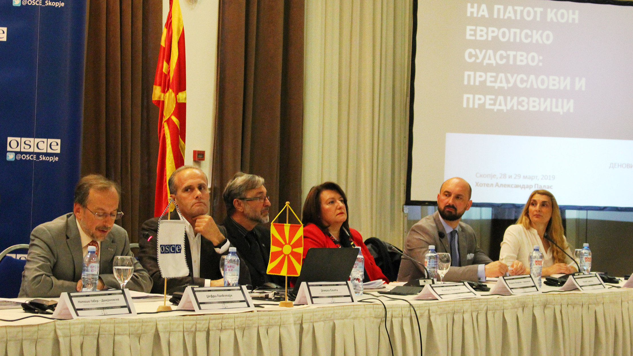 Jeffrey Goldstein (l), Deputy Head of the OSCE Mission to Skopje, addresses the OSCE-supported Regional Judiciary Conference in Skopje, 28 March 2019.