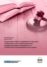 Оваа публикација беше изработена во соработка со националната Академија за судии и јавни обвинители. Ги анализира индивидуалните мерки за извршување на пресудите на Европскиот суд за човекови права (ЕСЧП). Публикацијата се фокусира на преиспитувањето на случаи или повторното отворање на постапки по пресуда на ЕСЧП според која е утврдена повреда на Европската конвенција за човекови права, како едно од средствата за постигнување на т.н. restitutio in integrum.