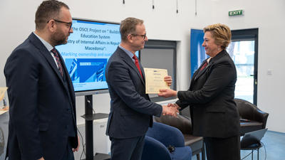 Skopje, 15 December 2025 – The OSCE Mission to Skopje and the Ministry of Internal Affairs (MoIA) today marked the completion of a new Hybrid Education System that strengthens police training and long-term national capacity.