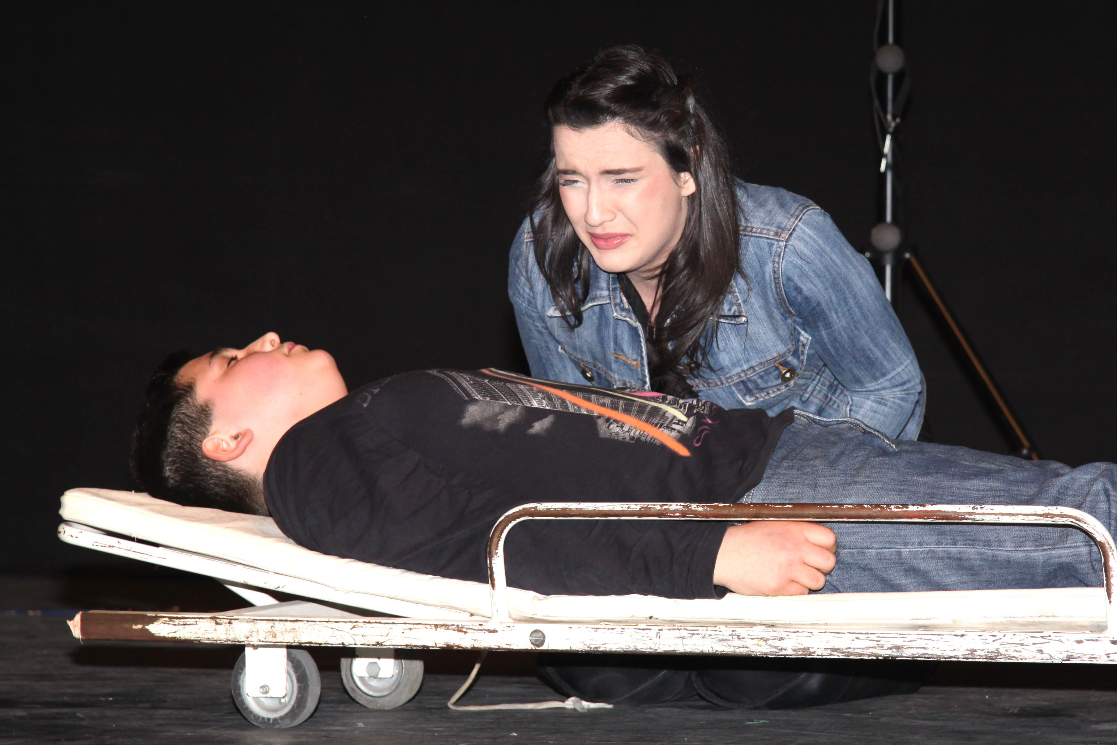 Secondary school students from Bitola acting in a play which teaches about the dangers of drug abuse, Bitola, 3 April 2013.