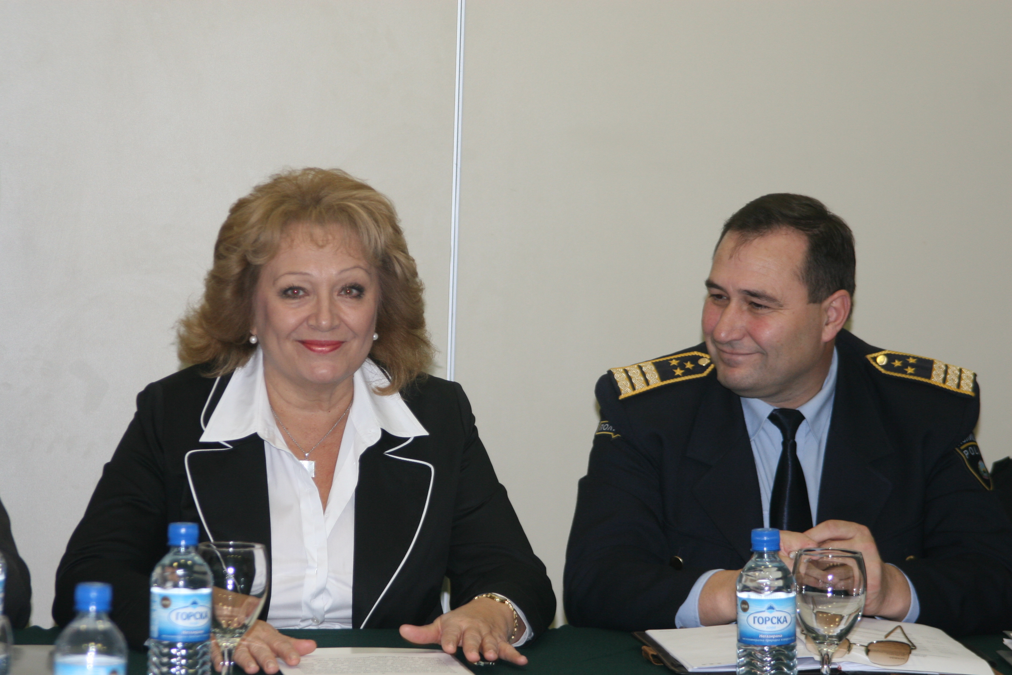 Ambassador Natalya Drozd (l), Deputy Head of the OSCE Spillover Monitor Mission to Skopje with Slave Vitanov, Head of the Prevention Unit at the Ministry of Internal Affairs, addressing participants at a gender course for police, Skopje, 18 November 2009.