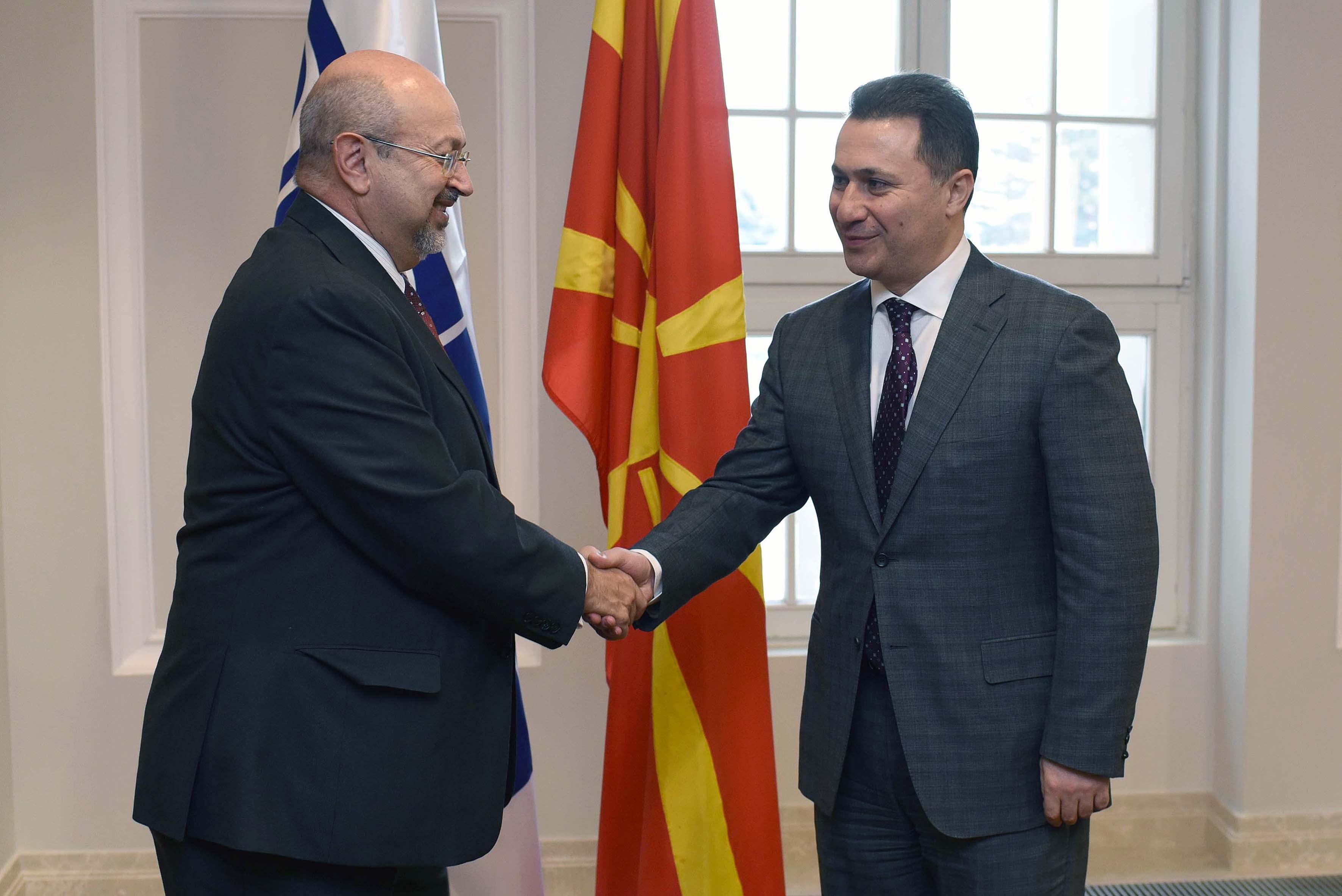 OSCE Secretary General Lamberto Zannier (l) shaking hand with the PM Nikola Gruevski (r) during his visit to Skopje, 30 November 2015.