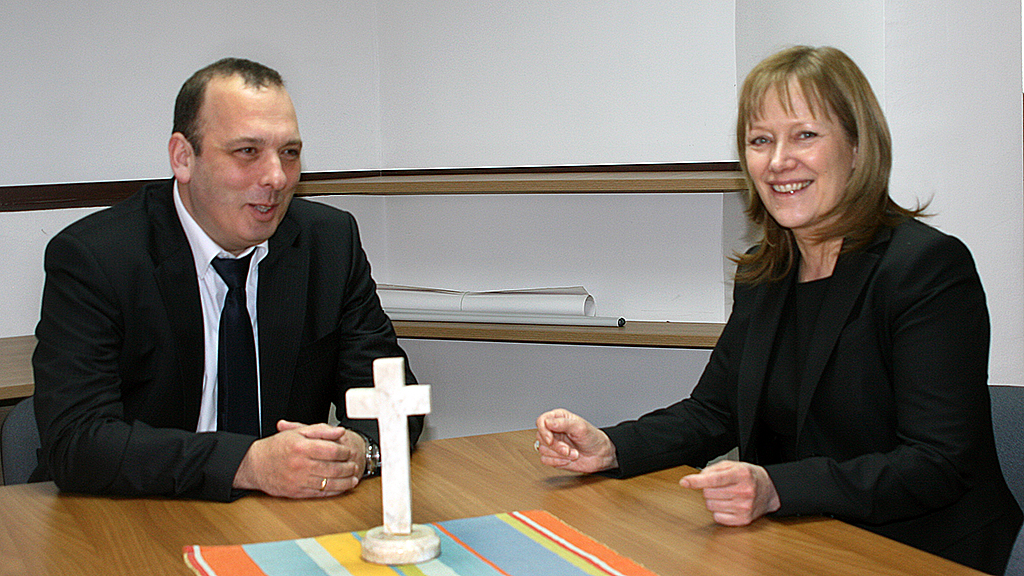 Head of OSCE Mission to Skopje Nina Suomalainen met with the President of the Evangelical-Methodist Church, Emil Zaev. Skopje, 23 February 2016.