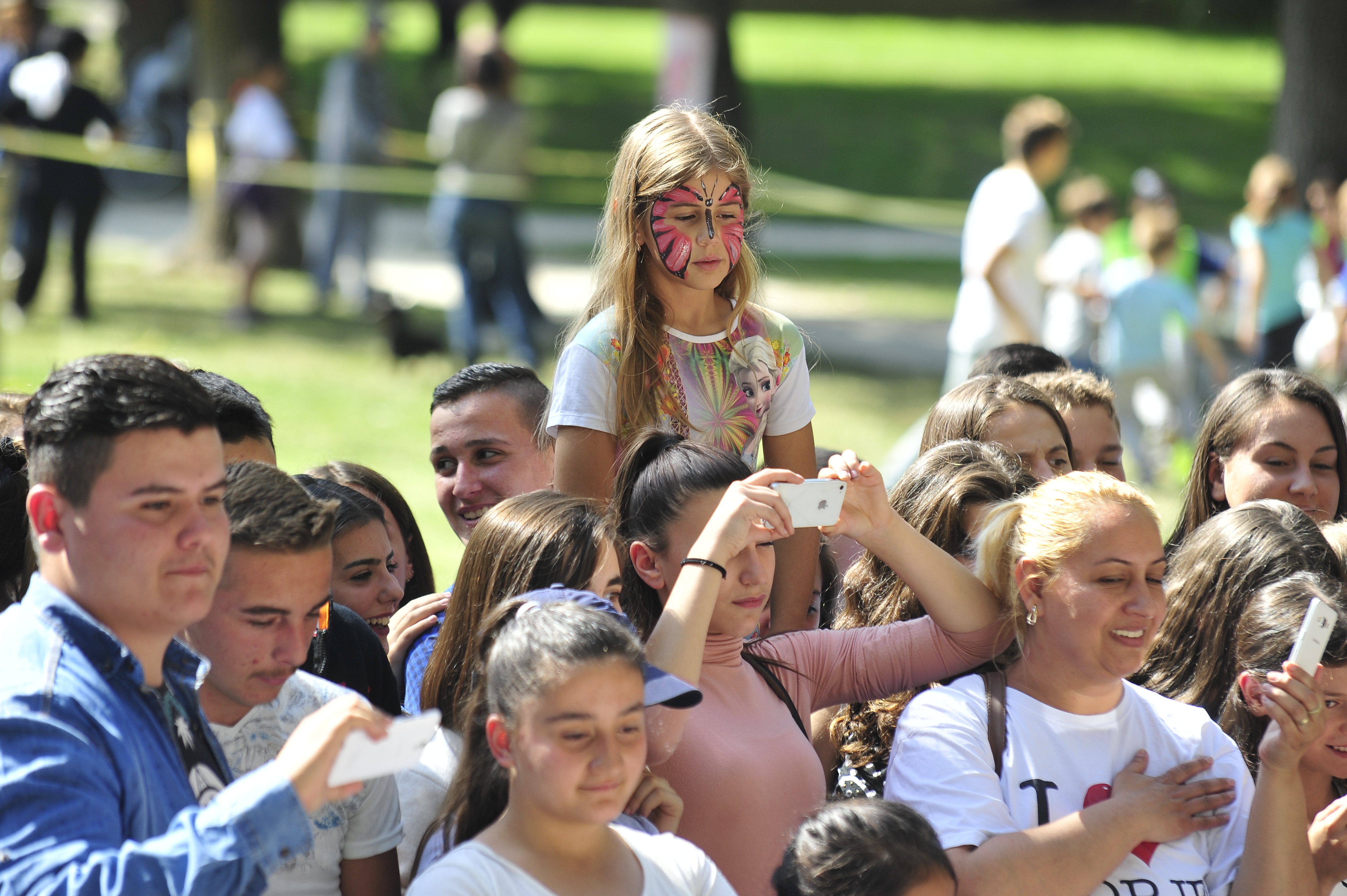 Students taking photos of performances during the OSCE-supported Building Bridges event in Skopje, 2 October 2016.
