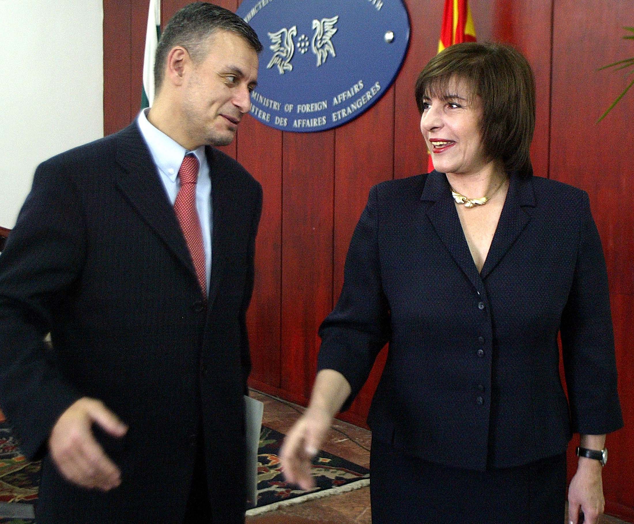 OSCE Chairman Solomon Passy meets Foreign Minister Mitreva in Skopje, 19 October 2004.