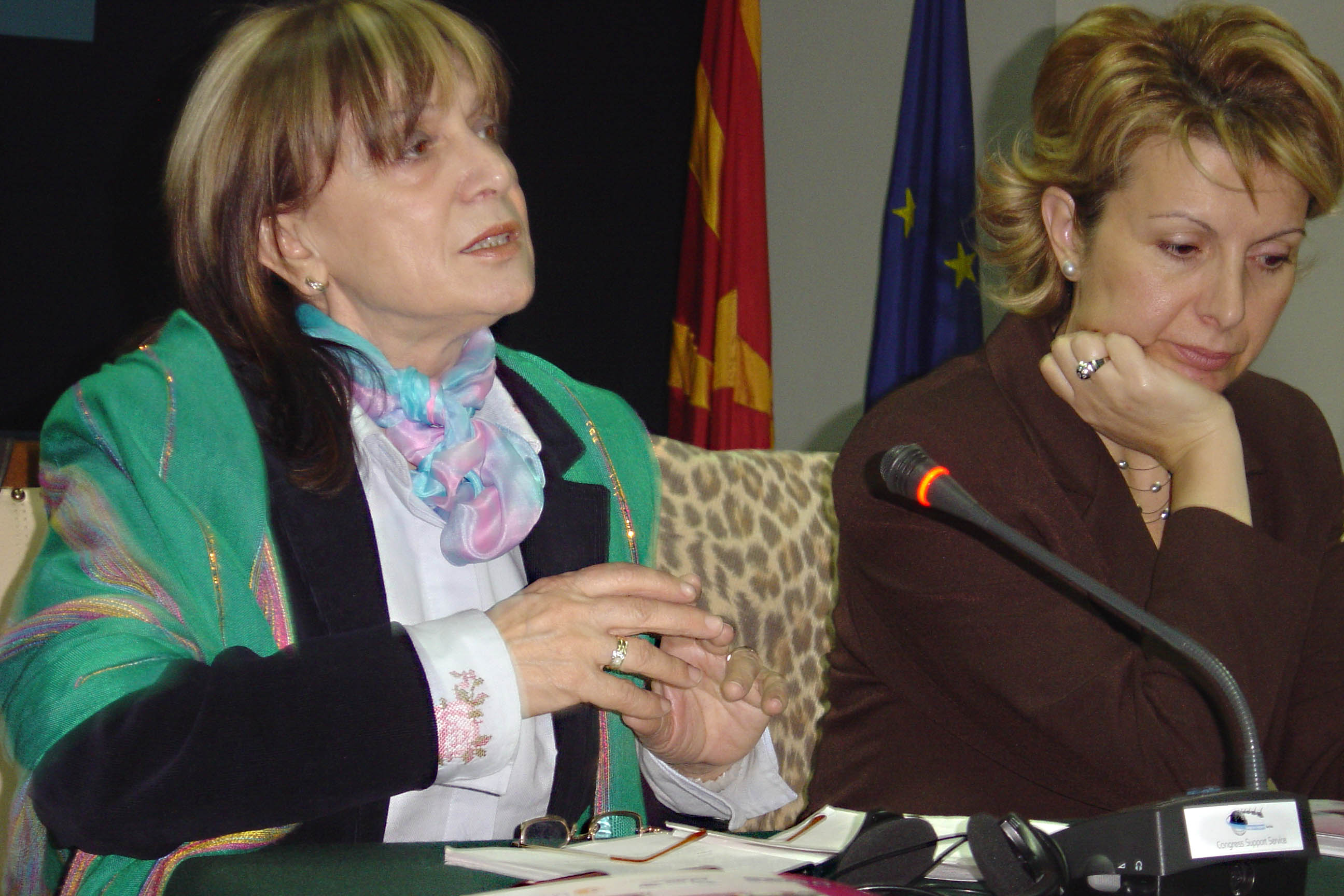 Savka Todorovska (left), President of UWOM, and Elena Grozdanova, co-ordinator of the Women Can Do It II - Municipal Election 2004 project, Skopje, 10 December 2004.