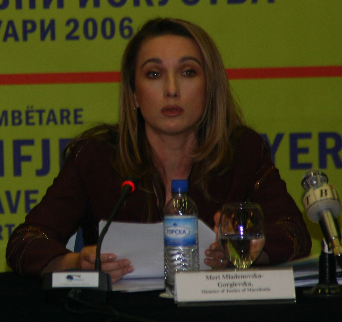 Minister of Justice Meri Mladenovska-Georgievska addresses the international conference on decriminalization of defamation held in Skopje, 9 and 10 February 2006.