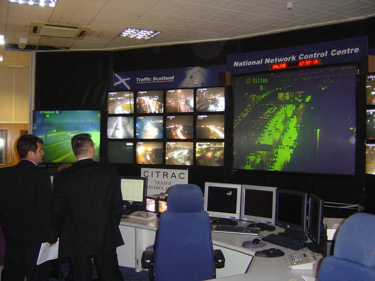 Officials from Skopje's Ministry of Interior, Mitko Sandev, Senior Advisor, Traffic Affairs Section (left) and Apostol Stojanovski, Head of Internal Affairs Section for Skopje, during a visit to Glasgow's traffic control centre, 22 November 2006.