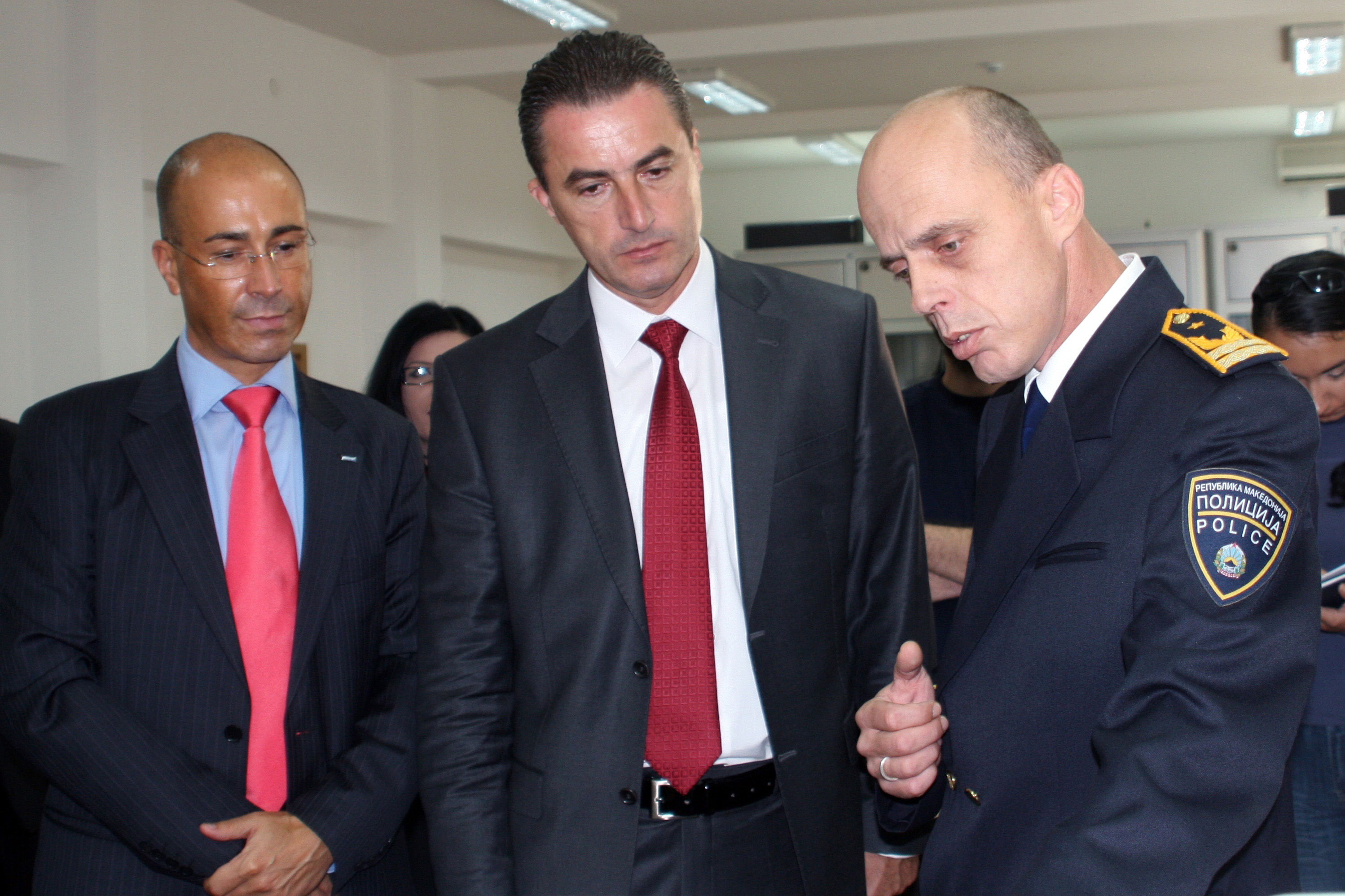 L-r: Head of the OSCE Mission's Police Development Department Paulo Costa; Director of the Bureau for Public Security Lubcho Todorovski; Director of Police Training Center Idrizovo Goce Bacanov, 28 September 2010.