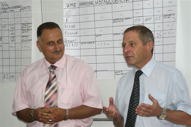 Philip Tolson (right), Head of the Skopje Mission's Police Development Unit, and Vojislav Zafirovski, Head of the Interior Ministry's Sector for Internal Control and Professional Standards, train police on interviewing techniques, Skopje, 13 July 2007.