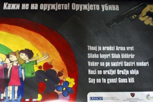 The winning drawing in a national competition for primary school pupils supported by the OSCE Spillover Monitor Mission to Skopje to raise awareness of the dangers of small arms and light weapons, Skopje, 21 October 2010.