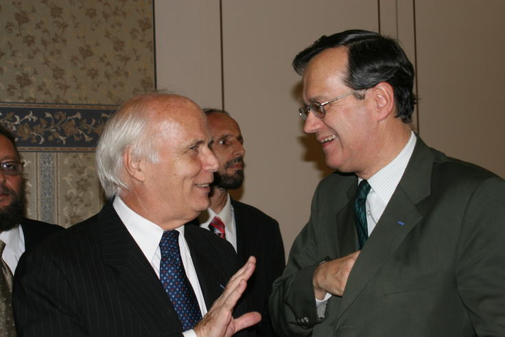 OSCE Secretary General Marc Perrin de Brichambaut (right) meets with Mission Head Ambassador Giorgio Radicati in Skopje, 1 October 2007.
