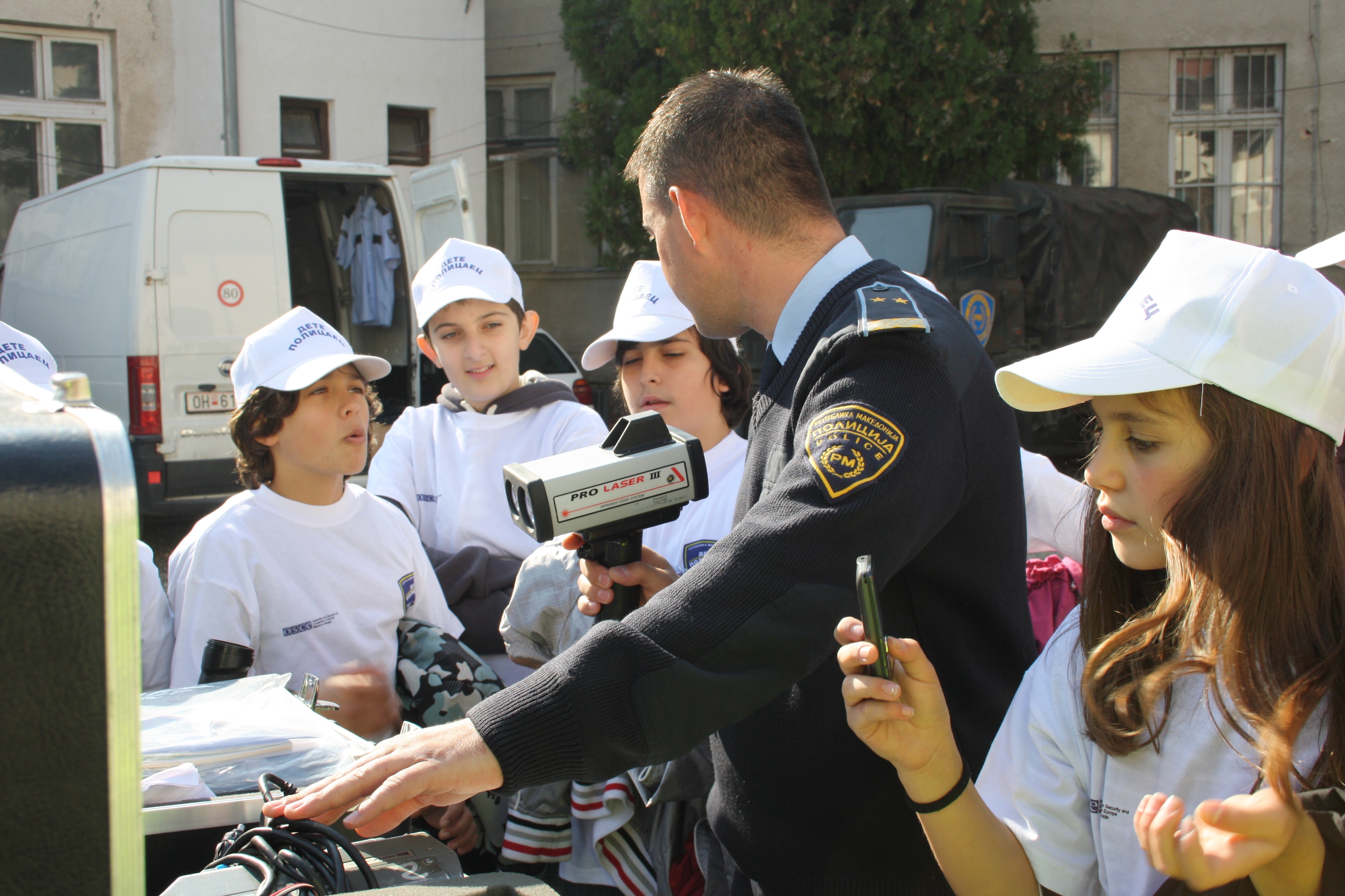 Children examine police materials and tools, as part of an OSCE-supported project aimed at getting children acquainted with the work of police, Kumanovo, 2 November 2011.