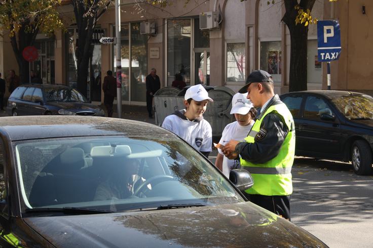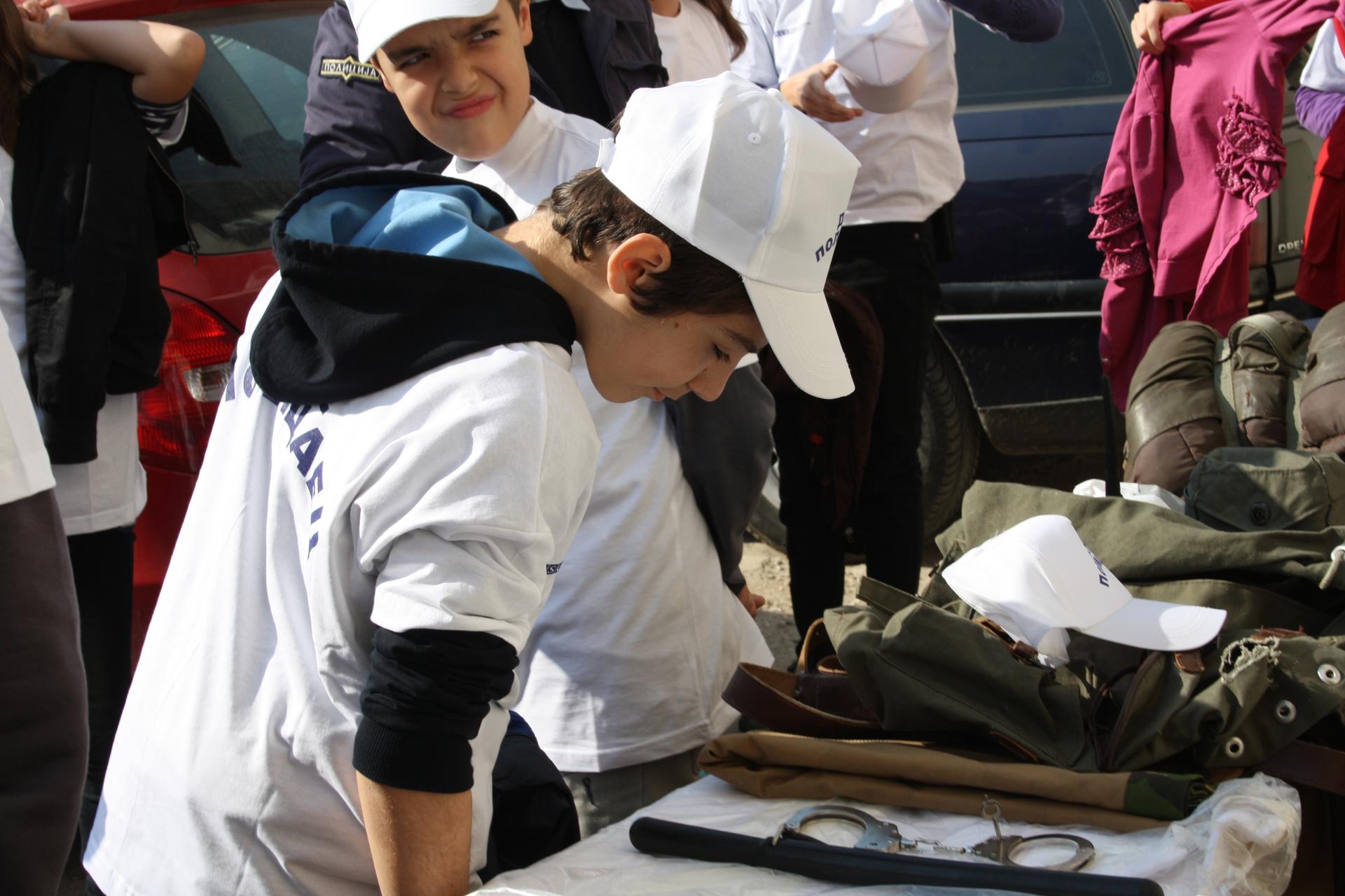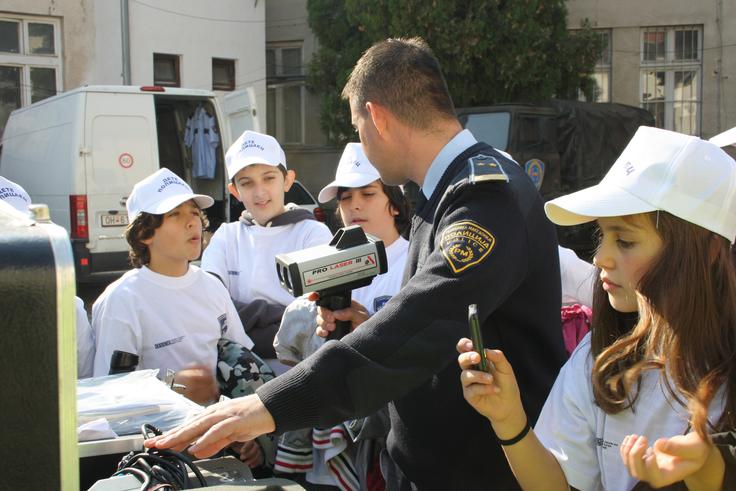 Schoolchildren were given a demonstration of policing equipment and a talk on the role of police officers, and how they work with police dogs. The children accompanied police officers on duty, learning about the importance of traffic rules. The children helped the police by handing out fliers with advice on traffic safety.