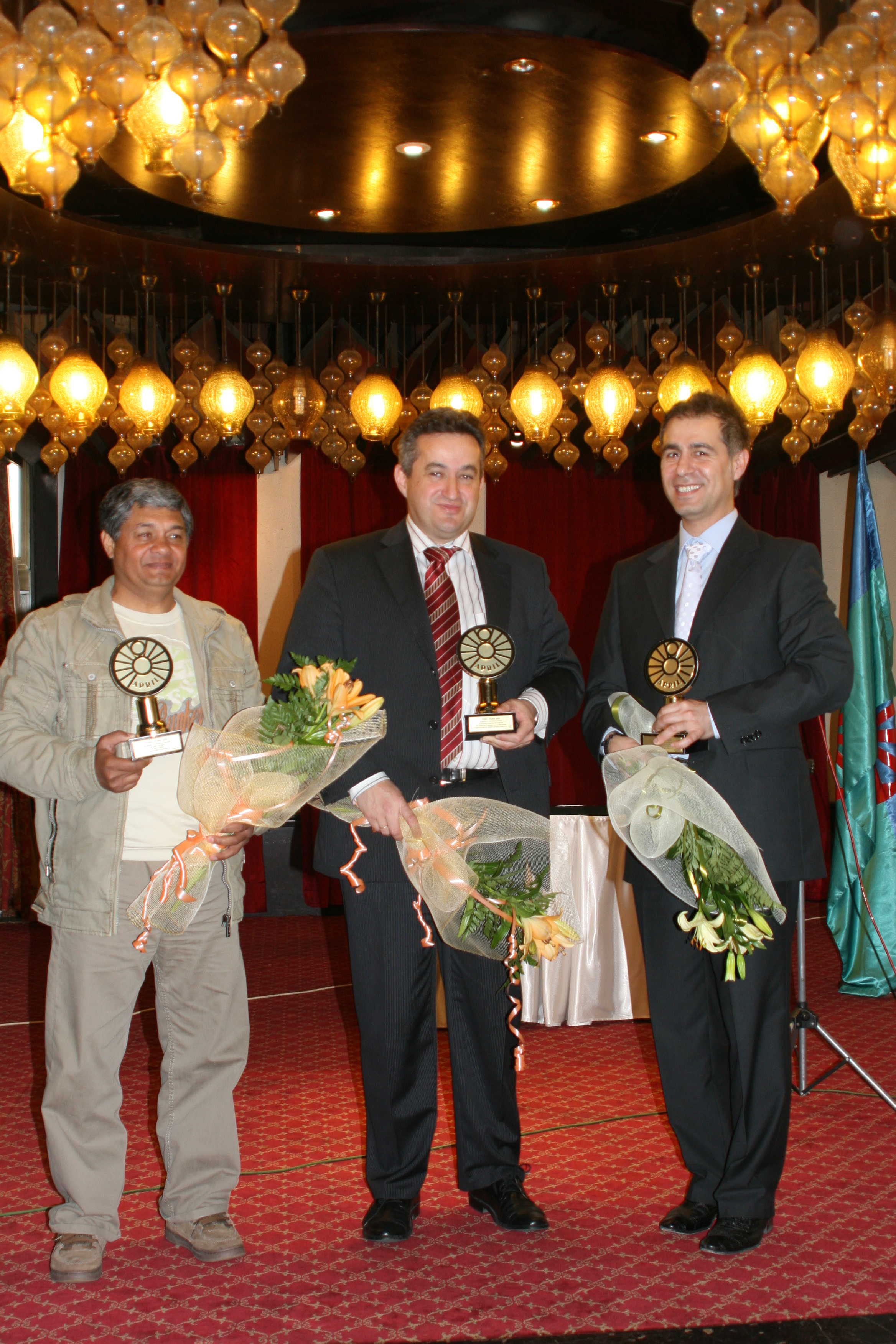 Ramadan Berat (right), the OSCE Mission to Skopje's Senior Assistant on Roma issues, at a ceremony where he received an award from a network of Roma NGOs for his work in improving the situation of the Roma community, 11 April 2008.