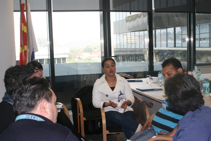 President of NGO Ambrela, Latifa Shikovska (r), holds a discussion with parents during the OSCE-supported workshop on how to better integrate Roma children within the education system, Skopje, 5 April 2012.