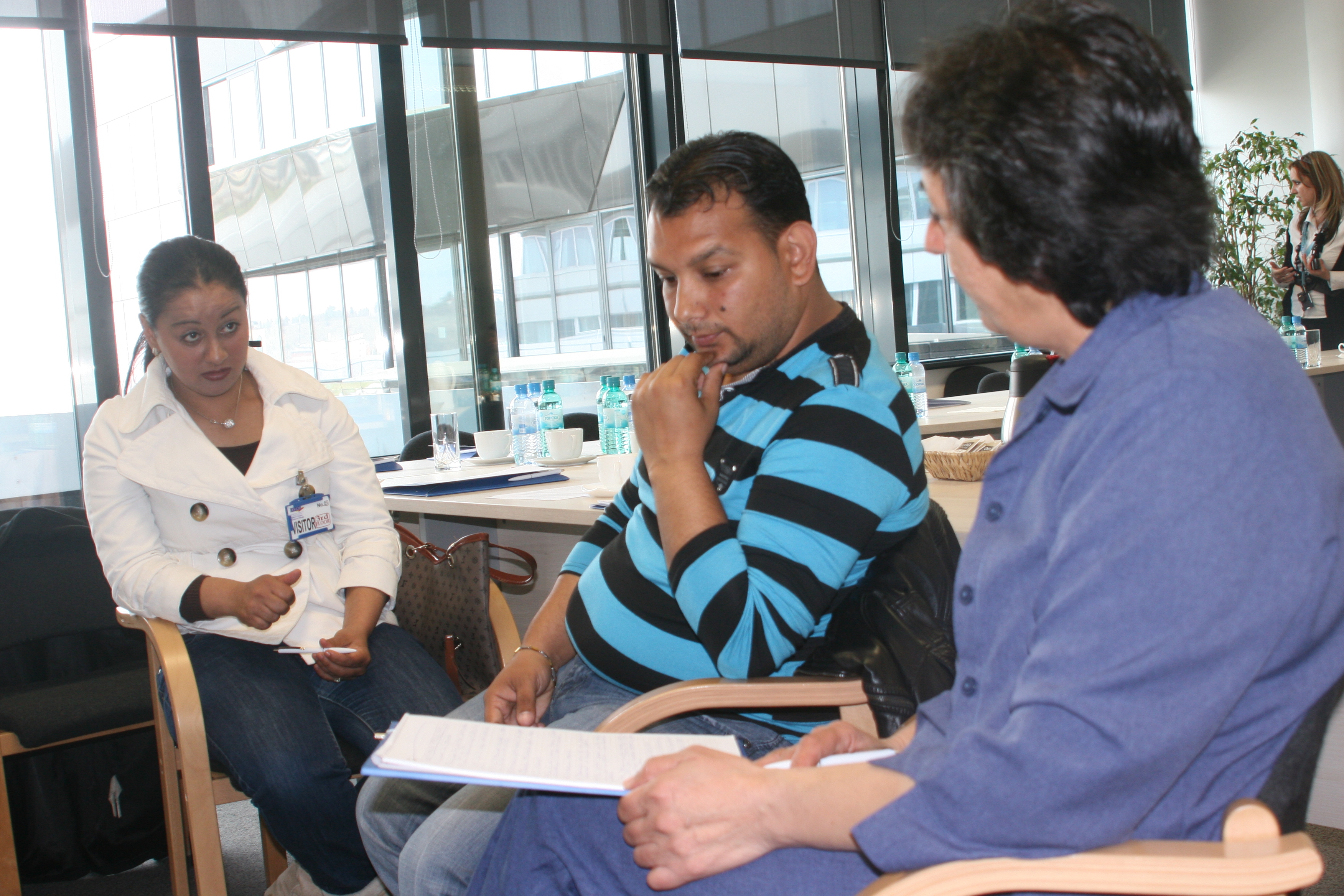 President of NGO Ambrela, Latifa Shikovska (r), holds a discussion with parents during the OSCE-supported workshop on how to better integrate Roma children within the education system, Skopje, 5 April 2012.