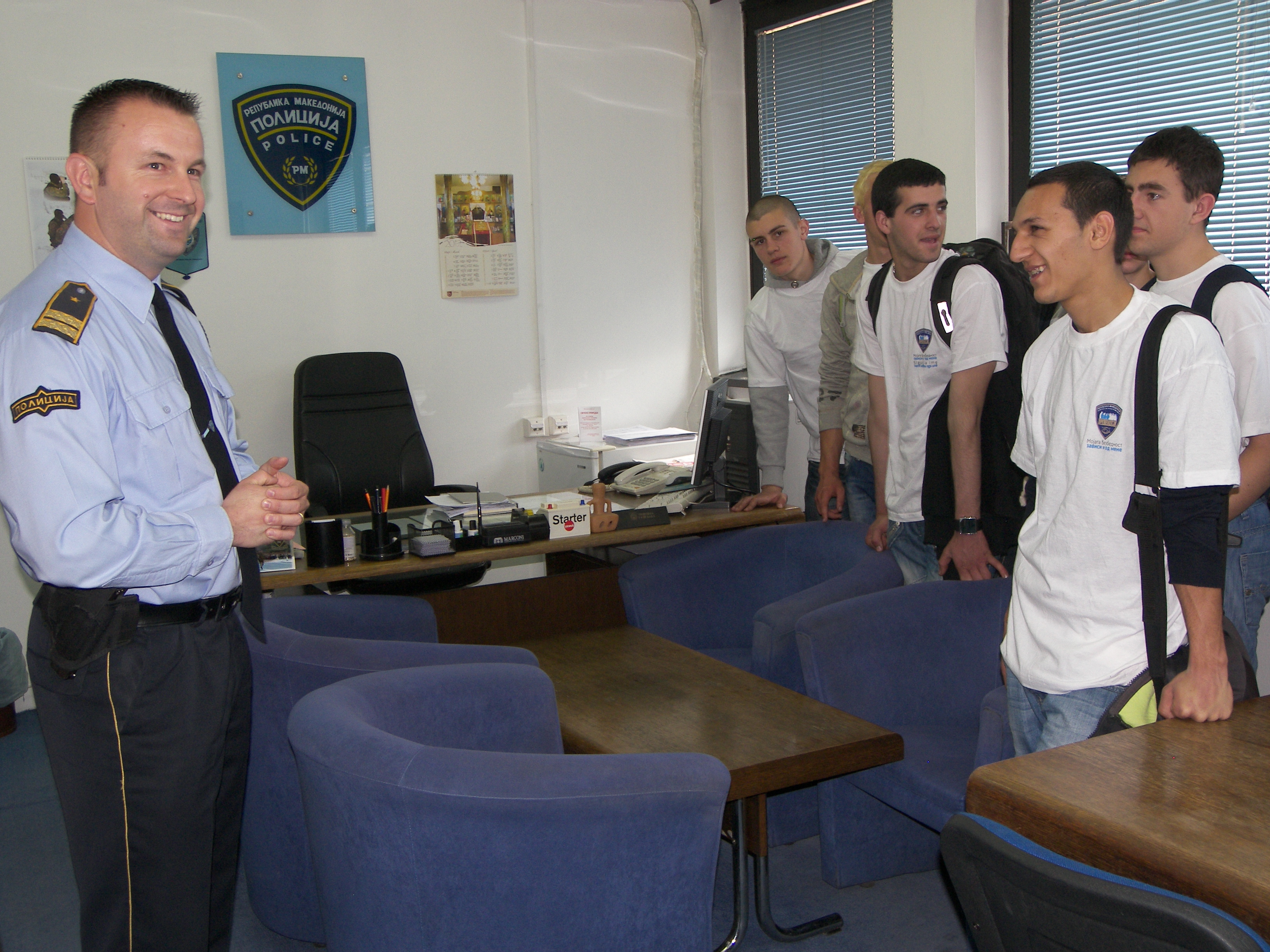 High school students visit Gazi Baba police station in Skopje as part of a Mission-supported project on school safety. The visit is aimed at familiarizing the students with the work of the police as a way of building trust, Skopje, 5 April 2012.