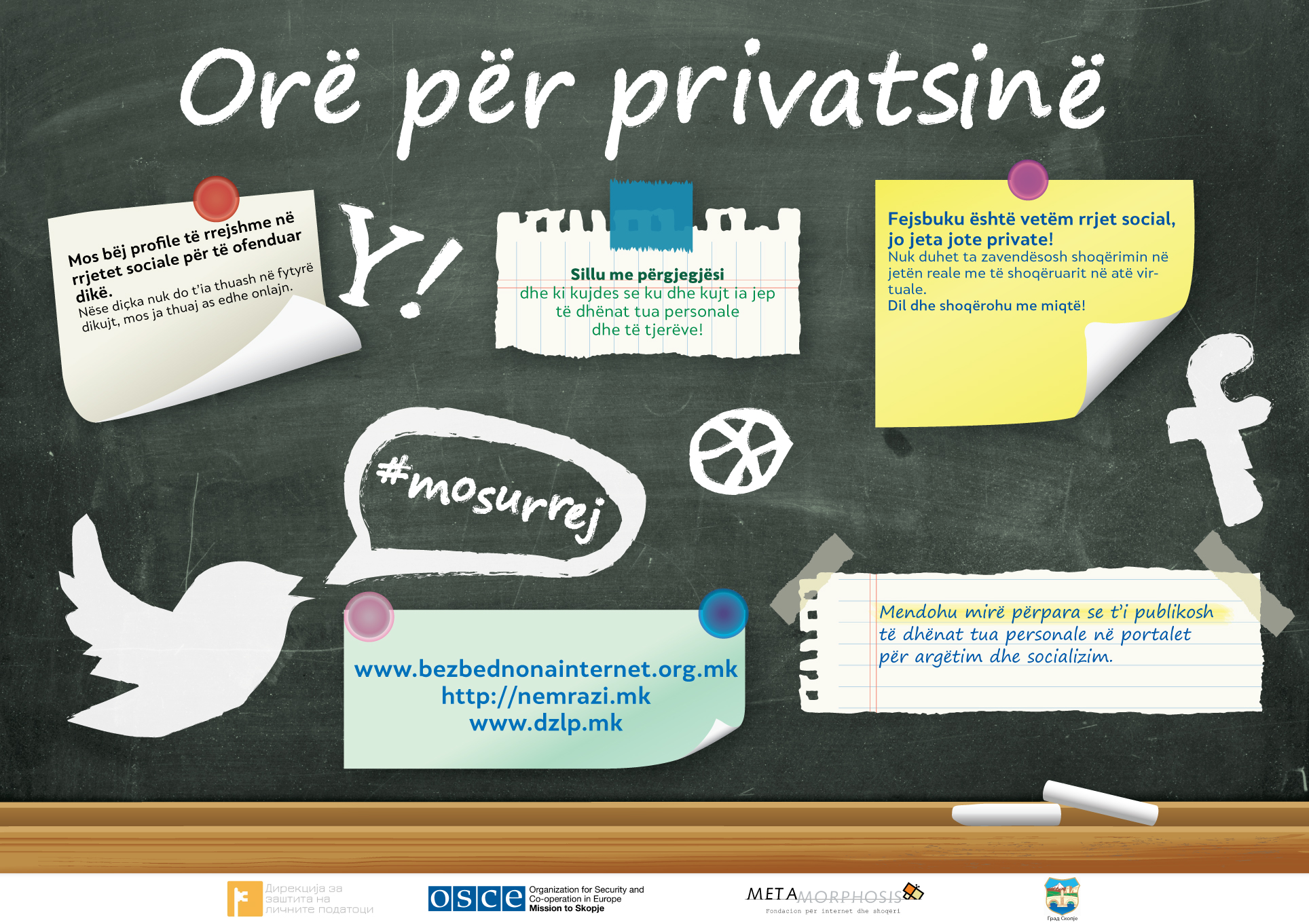 Poster me mesazhe kundër gjuhës së urrejtjes, të shpërndara për nxënësit e shkollave të mesme, si pjesë e projektit të mbështetr nga Misioni i OSBE-së në Shkup.