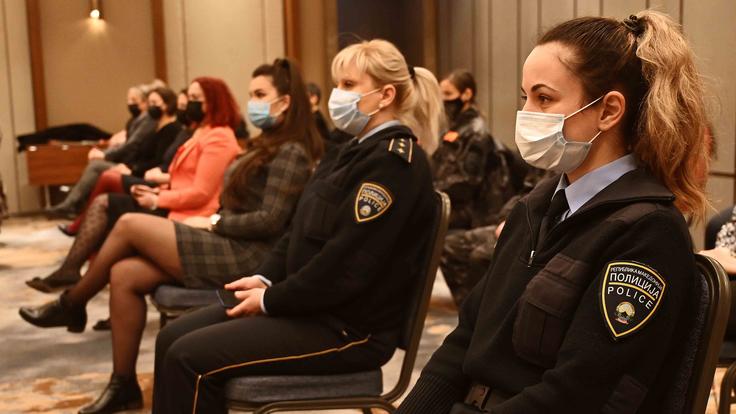 Women police officers participate in presentation of the OSCE-supported research focusing on stress factors affecting women police officers at work.