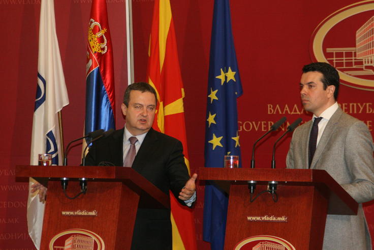 Ministar spoljnih poslova Nikola Poposki (d) sa predsedavajućim OEBS-u i ministrom spoljnih poslova Srbije Ivicom Dačićem, 18. februar 2015- god.